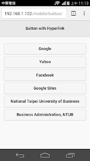 以下為以Android智慧型手機瀏覽器執行的結果,雖然兩者的樣式相同,但若點選下方的按鈕,則可連結至指定的超連結: