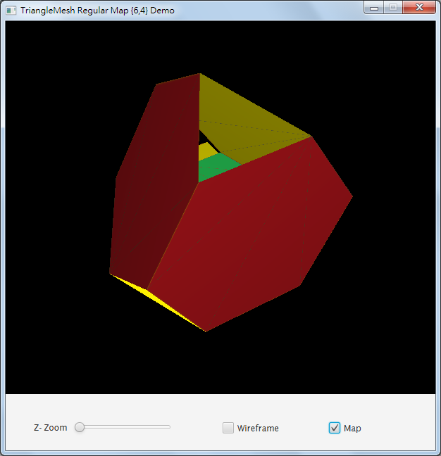 float C0 = length * 0.0f; float C1 = length * 1.0f; float C2 = length * 3.0f; float C3 = length * 6.0f; float C4 = length * 9.0f; // 建立TriangleMesh TriangleMesh trianglemesh = new TriangleMesh(); // 設定頂點座標 trianglemesh.getPoints().addAll( C2, -C2, C4, C2, C2, -C4, -C2, C2, C4, -C2, -C2, -C4, C4, -C2, C2, C4, C2, -C2, -C4, C2, C2, -C4, -C2, -C2, C2, -C4, C2, C2, C4, -C2, -C2, C4, C2, -C2, -C4, -C2, C0, C0, C3, C0, C0, -C3, C3, C0, C0, -C3, C0, C0, C0, C3, C0, C0, -C3, C0, C1, C1, C2, C1, -C1, -C2, -C1, -C1, C2, -C1, C1, -C2, C2, C1, C1, C2, -C1, -C1, -C2, -C1, C1, -C2, C1, -C1, C1, C2, C1, C1, -C2, -C1, -C1, -C2, C1, -C1, C2, -C1 ); // 設定貼圖座標 trianglemesh.getTexCoords().addAll( 0.0f, 0.0f, // 0 0.5f, 0.0f, // 1 1.0f, 0.0f, // 2 0.0f, 0.5f, // 3 0.5f, 0.5f, // 4 1.0f, 0.5f, // 5 0.0f, 1.0f, // 6 0.5f, 1.0f, // 7 1.0f, 1.0f // 8 ); // 設定各三角形的面 trianglemesh.getFaces().addAll( 0, 0, 2, 4, 6, 1, 0, 0, 6, 4, 7, 1, 0, 0, 7, 4, 11, 1, 0, 0, 11, 4, 8, 1, 0, 1, 8, 5, 17, 2, 0, 1, 17, 5, 28, 2, 0, 1, 28, 5, 20, 2, 0, 1, 20, 5, 12, 2, 0, 1, 12, 5, 18, 2, 0, 1, 18, 5, 22, 2, 0, 1, 22, 5, 14, 2, 0, 1, 14, 5, 4, 2, 0, 0, 4, 4, 5, 1, 0, 0, 5, 4, 9, 1, 0, 0, 9, 4, 10, 1, 0, 0, 10, 4, 2, 1, 1, 0, 3, 4, 7, 1, 1, 0, 7, 4, 6, 1, 1, 0, 6, 4, 10, 1, 1, 0, 10, 4, 9, 1, 1, 1, 9, 5, 16, 2, 1, 1, 16, 5, 29, 2, 1, 1, 29, 5, 21, 2, 1, 1, 21, 5, 13, 2, 1, 1, 13, 5, 19, 2, 1, 1, 19, 5, 23, 2, 1, 1, 23, 5, 14, 2, 1, 1, 14, 5, 5, 2, 1, 0, 5, 4, 4, 1, 1, 0, 4, 4, 8, 1, 1, 0, 8, 4, 11, 1, 1, 0, 11, 4, 3, 1, 15, 1, 6, 5, 2, 2, 15, 1, 2, 5, 12, 2, 15, 1, 12, 5, 20, 2, 15, 1, 20, 5, 24, 2, 15, 1, 24, 5, 28, 2, 15, 1, 28, 5, 17, 2, 15, 1, 17, 5, 11, 2, 15, 1, 11, 5, 7, 2, 15, 1, 7, 5, 3, 2, 15, 1, 3, 5, 13, 2, 15, 1, 13, 5, 21, 2, 15, 1, 21, 5, 25, 2, 15, 1, 25, 5, 29, 2, 15, 1, 29, 5, 16, 2, 15, 1, 16, 5, 10, 2, 15, 1, 10, 5, 6, 2, 26, 1, 16, 5, 9, 2, 26, 1, 9, 5, 5, 2, 26, 1, 5, 5, 14, 2, 26, 1, 14, 5, 22, 2, 26, 3, 22, 7, 23, 4, 26, 3, 23, 7, 19, 4, 26, 3, 19, 7, 21, 4, 26, 3, 21, 7, 29, 4, 26, 3, 29, 7, 25, 4, 26, 3, 25, 7, 24, 4, 26, 3, 24, 7, 20, 4, 26, 3, 20, 7, 18, 4, 26, 1, 18, 5, 12, 2, 26, 1, 12, 5, 2, 2, 26, 1, 2, 5, 10, 2, 26, 1, 10, 5, 16, 2, 27, 1, 17, 5, 8, 2, 27, 1, 8, 5, 4, 2, 27, 1, 4, 5, 14, 2, 27, 1, 14, 5, 23, 2, 27, 3, 23, 7, 22, 4, 27, 3, 22, 7, 18, 4, 27, 3, 18, 7, 20, 4, 27, 3, 20, 7, 28, 4, 27, 3, 28, 7, 24, 4, 27, 3, 24, 7, 25, 4, 27, 3, 25, 7, 21, 4, 27, 3, 21, 7, 19, 4, 27, 1, 19, 5, 13, 2, 27, 1, 13, 5, 3, 2, 27, 1, 3, 5, 11, 2, 27, 1, 11, 5, 17, 2 ); // 設定各面的平滑參數 trianglemesh.getFaceSmoothingGroups().addAll( 0, 0, 0, 0, 0, 0, 0, 0, 0, 0, 0, 0, 0, 0, 0, 0, 0, 0, 0, 0, 0, 0, 0, 0, 0, 0, 0, 0, 0, 0, 0, 0, 0, 0, 0, 0, 0, 0, 0, 0, 0, 0, 0, 0, 0, 0, 0, 0, 0, 0, 0, 0, 0, 0, 0, 0, 0, 0, 0, 0, 0, 0, 0, 0, 0, 0, 0, 0, 0, 0, 0, 0, 0, 0, 0, 0, 0, 0, 0, 0 ); // 建立MeshView MeshView meshview; meshview = new MeshView(createMesh(16)); ...【參考資料】