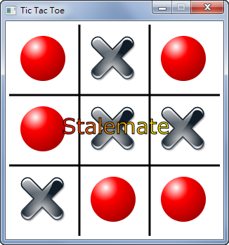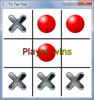 井字遊戲 (Tic Tac Toe) 又稱為井字棋或圈圈叉叉,是我們從小玩到大的益智遊戲,兩個人隨時只要有紙和筆,就可以開始遊戲,其中一方打圈、一方打叉,輪流在3×3的格子上畫上圈叉,最先將三個圈或三個叉連成一線者則獲勝,連線可為橫線、直線或斜線,若格子填滿後仍無任何一方連成一線,則為平手,如下圖所示: